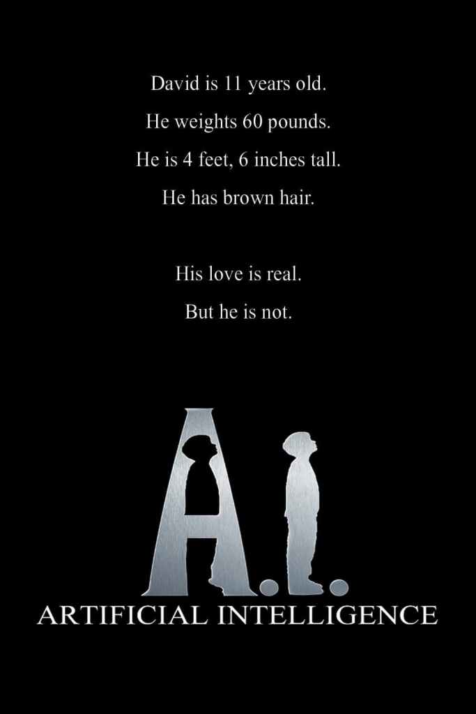 In the movie Artificial Intelligence, produced by Kubrick and directed by Spielberg, David is a simulated robot child created by the company Mimicronics to serve his family with his innate ability to love people. His new “parents”, whose original human child was frozen for treatment after an accident, purchased David because of the pain of losing their child, and he was abandoned several times in the process of getting along with his “parents” because he was a robot child and not a human child. However, to get his mother’s love, he thought that if he could become a real human child, she would love him. He spends the rest of his life searching for a way to become a real human child. He heard that if he found the Blue Fairy, he could become a real human being, and he suffered so much in order to find the Blue Fairy, and waited for her for thousands of years, but even after the Blue Fairy collapsed into a puddle of debris in the water, he was still a robotic child after all.
